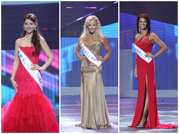 Kết quả chung cuộc, quý bà Singapore giành ngôi Á hậu 2 (trái). Á hậu 1 thuộc về Quý bà Anh (giữa). Hoa hậu Quý bà Mỹ giành ngôi vị cao nhất (phải).