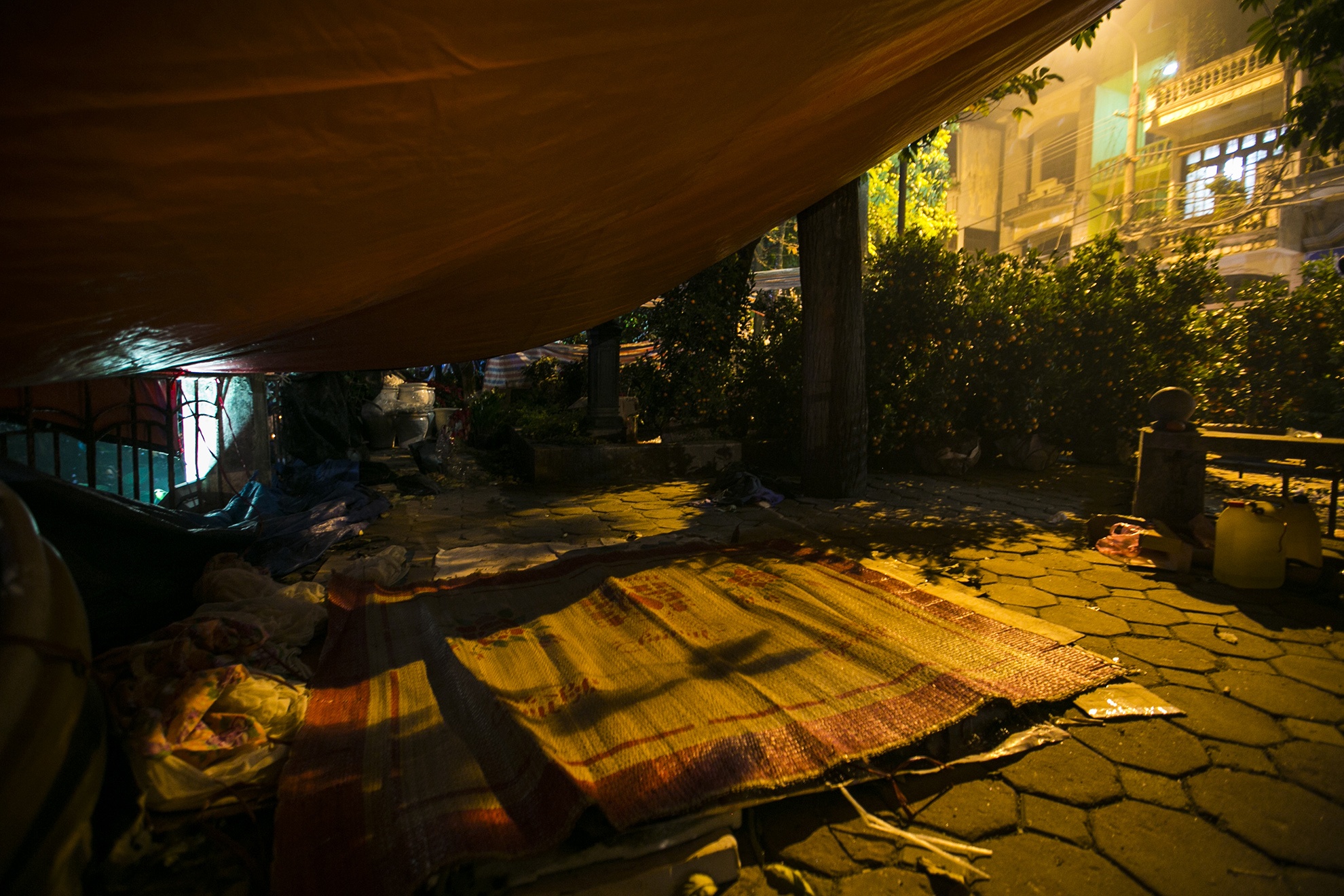 Để bảo vệ cây cảnh không bị mất trộm, người buôn bán có thể ngủ ở bất cứ đâu với chăn, chiếu, một miếng bạt che sương… dù nằm ngay cạnh một thùng rác