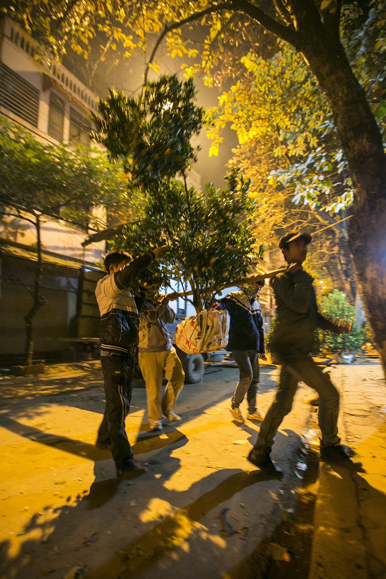 Trong khi nhiều người ngủ và nghỉ ngơi, những chuyến đào quất vẫn tiếp tục được chuyển trong đêm để sáng ra có hàng phục vụ khách. Một tiểu thương cho biết, trong ngày cuối cùng của năm, nếu cây cảnh bán không hết chỉ còn cách vứt đi hơn là bỏ chi phí vận chuyển về nhà.