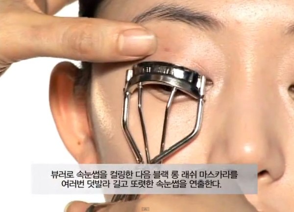 Bước 7: Kẹp mi tạo độ cong rồi cẩn thận chuốt bằng mascara giữ nếp cho mi mắt.