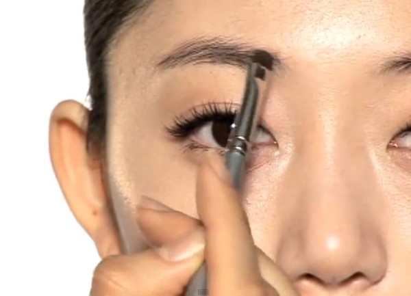 Bước 8: Dùng phấn màu đen tán lông mày cho đậm nét.