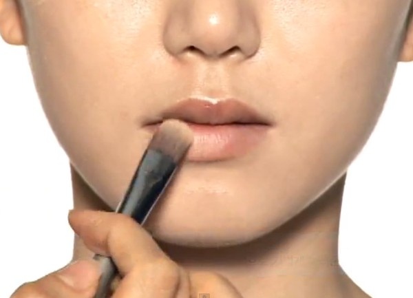 Bước 9: Phủ 1 lớp kem foundation lên môi để môi đều màu và bám son lâu hơn.