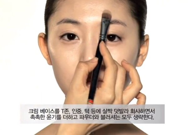 Bước 4: Dùng kem highlight sáng tán lên vùng chữ T, cằm, khóe miệng và vùng nhân trung.