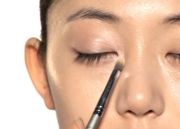 Bước 5: Dùng phấn hồng nhũ phủ đều bầu mắt và phần mi dưới để tạo sự tự nhiên.