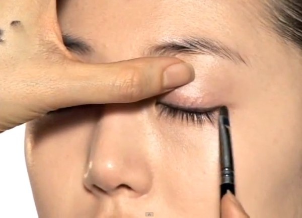 Bước 6: Viền mi mắt trên 1 đường mỏng bằng gel kẻ mắt màu nâu.