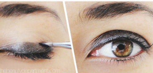 | Trước khi đánh phấn mắt, phái đẹp sử dụng bút kẻ mắt màu đen để vẽ đường viền. Đường viền chì đậm sẽ tạo độ sâu và giúp đôi mắt trông dài, to hơn. Dùng cọ mềm để tán đều chì kẻ mắt như hình vẽ. |