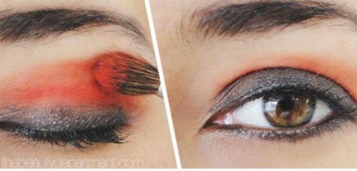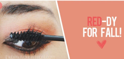 | Cuối cùng, kẹp mi và chuốt mascara để kết thúc phần trang điểm mắt với phấn mắt tông màu đỏ. |