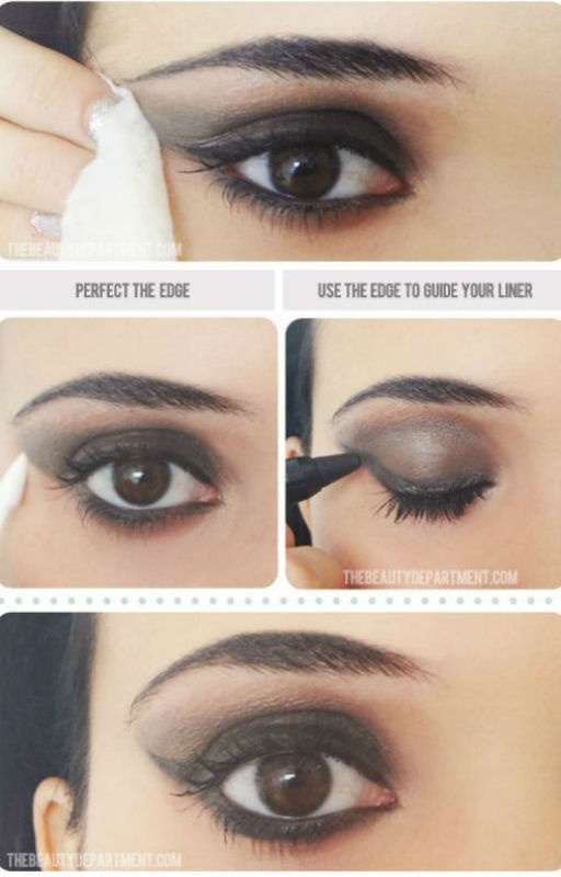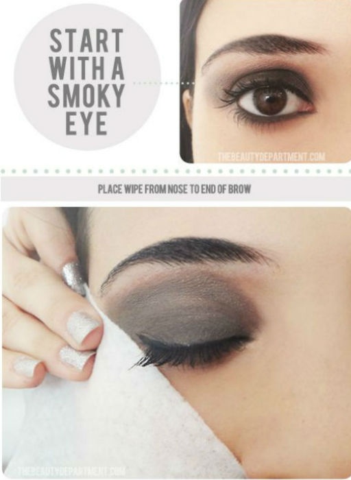 | Chỉnh sửa, tạo dáng với khăn ướt: Để tạo độ chếch vừa phải ở phần đuôi cho đôi mắt khói, hãy nhờ tới sự giúp đỡ của khăn ướt và tăm bông. Đặt mép của khăn ướt nối từ cánh mũi lên phần đuôi mắt như hình vẽ... |