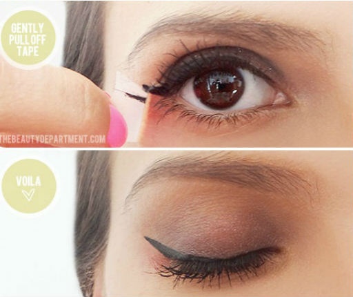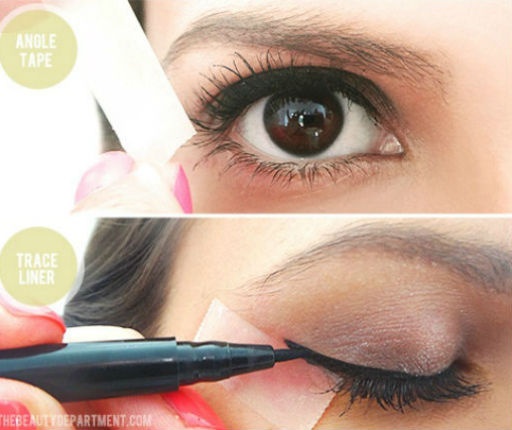 | Vẽ đuôi mắt đẹp với băng dính: Dùng băng dính dán vào phần đuôi mắt để thoải mái tô màu, kẻ mắt nước mà không sợ bị lem nhem. |