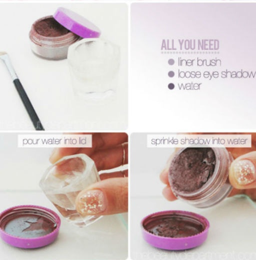 | Chế eyeliner từ phấn mắt: Nếu bút kẻ mắt nước của bạn bị khô khiến bạn gặp nhiều khó khăn khi sử dụng, hãy tự chế eyeliner từ phấn mắt để thay thế. Trộn lẫn một ít phấn mắt với một chút nước vào nắp của hộp phấn mắt... |