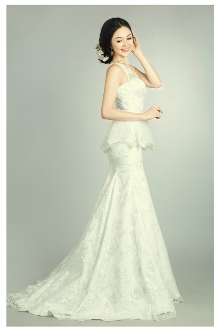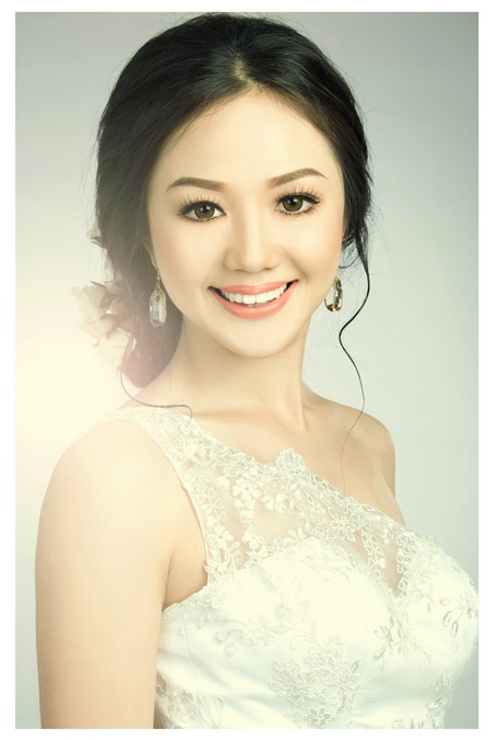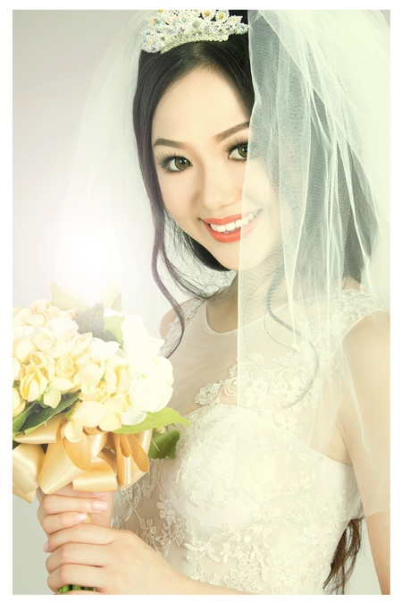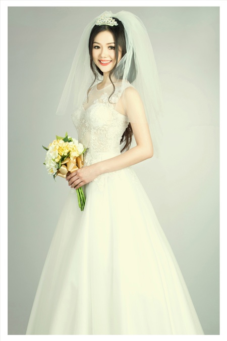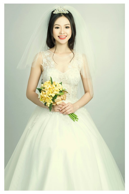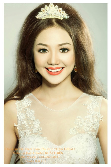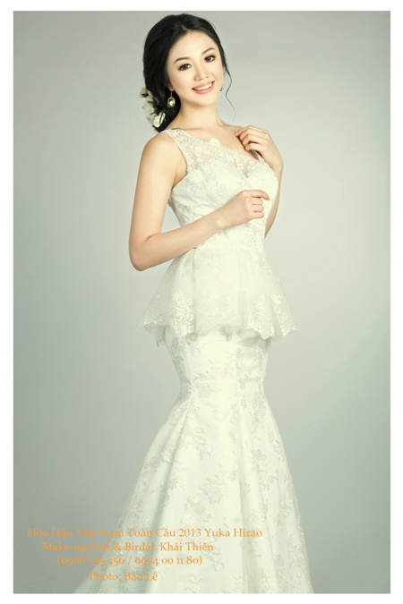 | Hoa hậu Yuka Hirao đã khoe được vẻ đẹp mong manh, trong sáng nhờ tông trang điểm nhẹ nhàng, tươi tắn và mẫu váy cưới "trong suốt", đẹp bắt mắt. |