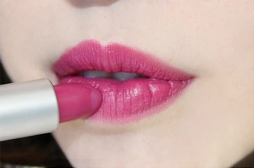 | Bước 1: Sau khi dùng son dưỡng cho đôi môi mềm mịn bạn đánh son hồng lên môi. |
