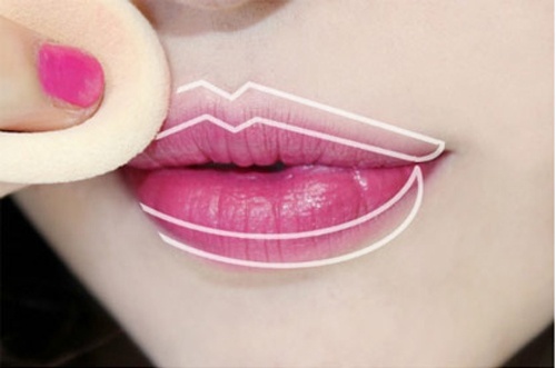 | Bước 2: Lấy bông phấn dặm lại son trên viền môi, với màu son hồng bạn không cần kẻ viền môi. |