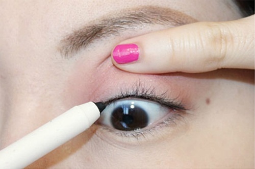 | Bước 3: Dùng chì mềm màu đen kẻ mí trong cho đôi mắt sâu hơn. |
