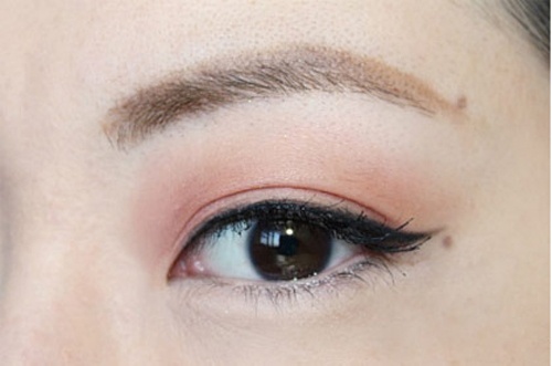 | Bước 4: Dùng bút chì kẻ mắt nước để vẽ mắt mèo, phần đuôi hơi chếch lên nhìn sẽ trẻ trung hơn. |