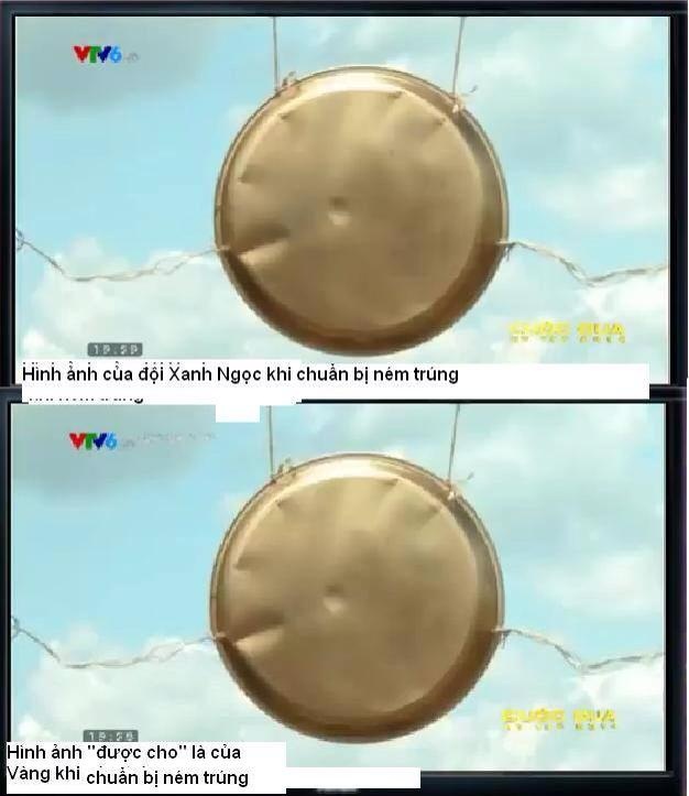 Phần thi của đội Vàng cũng chỉ có cảnh quả dừa trúng đích và cảnh 2 cô gái ăn mừng chứ không có cảnh toàn cho thấy quả dừa kia đúng là của đội Vàng.