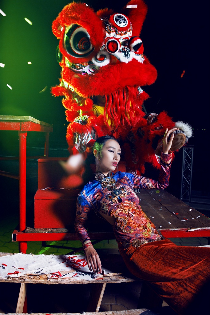 Kết hợp cùng Trang Khiếu thể hiện bộ ảnh mang chủ đề trung thu là chú lân, hình ảnh tượng trưng cho mùa lễ hội tại Việt Nam.