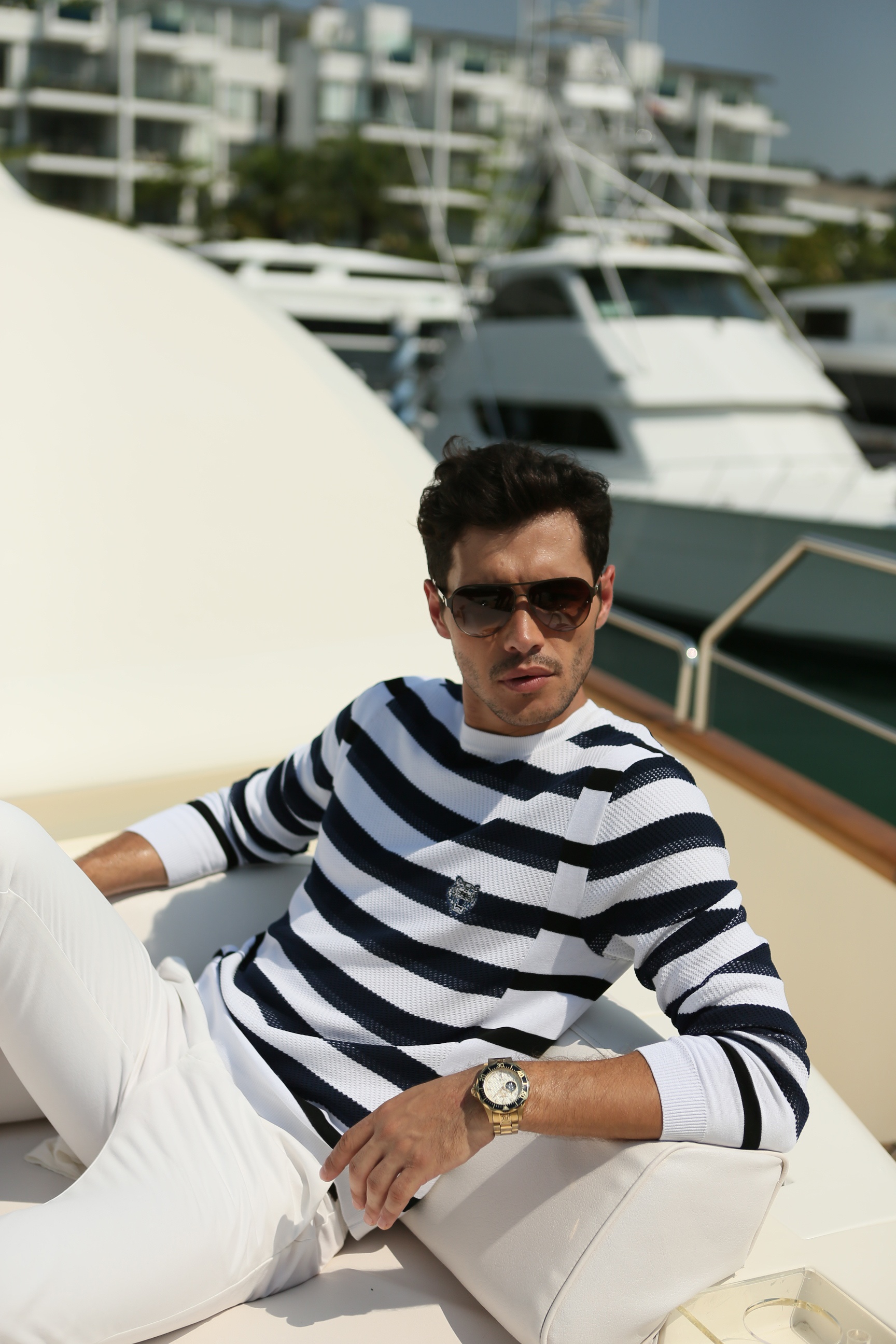 | Cặp đôi còn diện những trang phục tắm để khoe hình thể gợi cảm. Bộ ảnh được thực hiện trên chiếc du thuyền trị giá 10 triệu đô, tại sự kiện du thuyền lớn nhất Đông Nam Á, diễn ra vào tháng 4 vừa qua. |