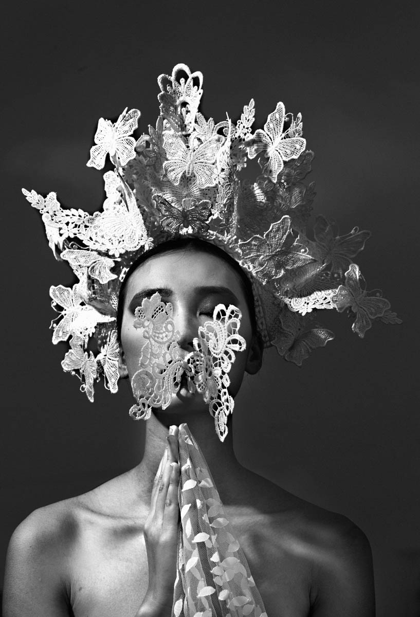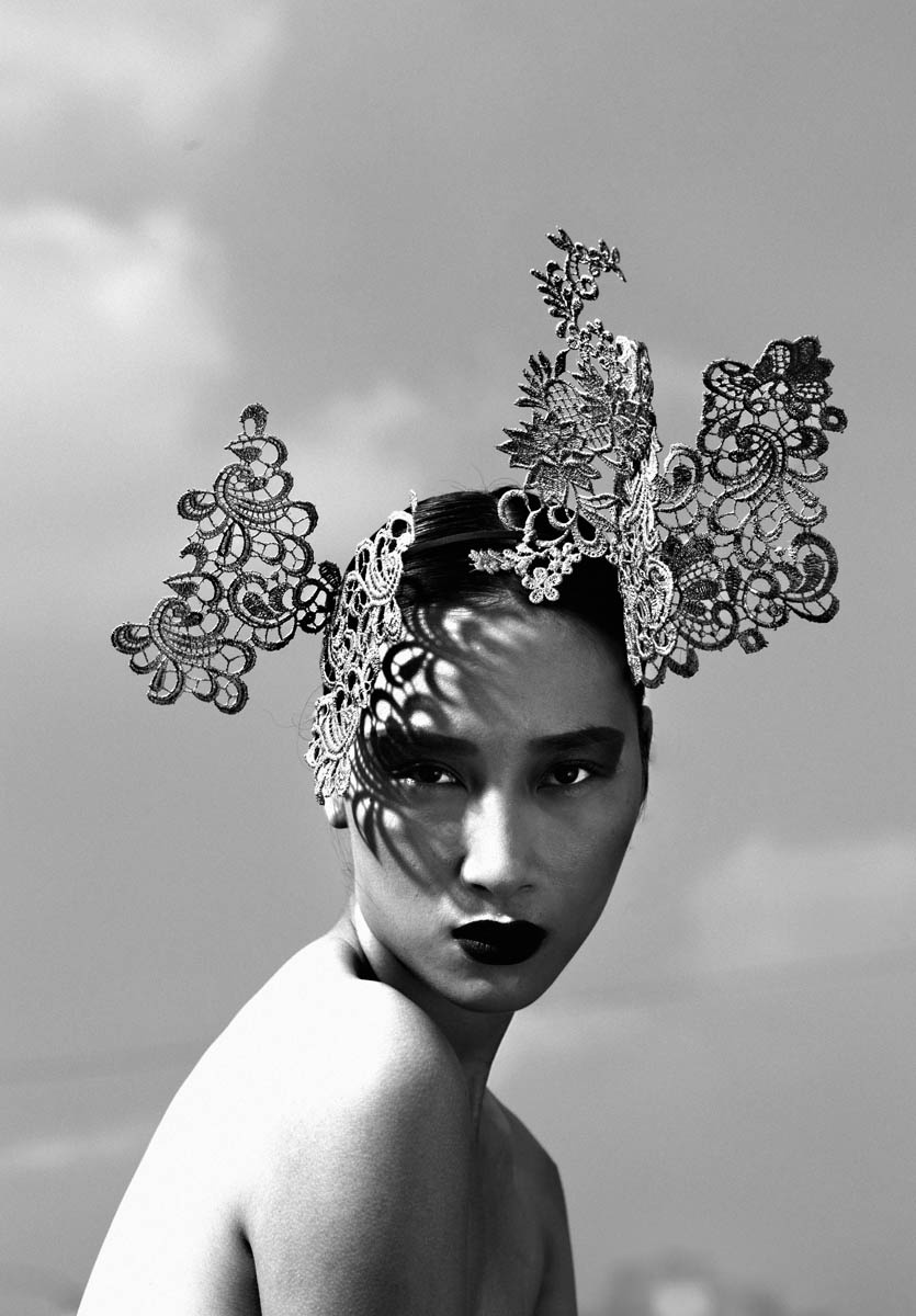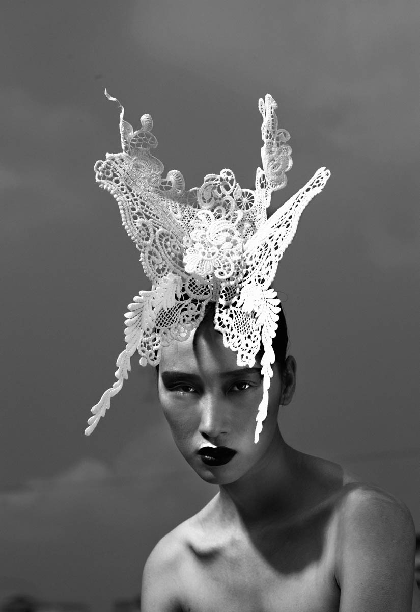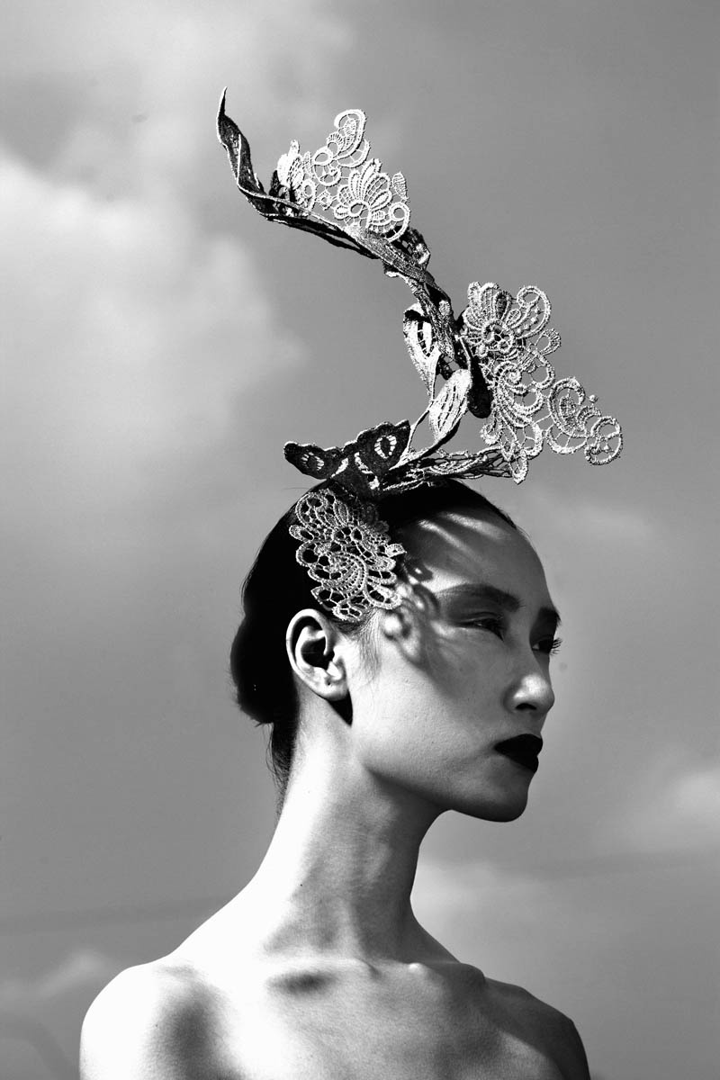| Những đường uốn lượn từ cách xử lý chất liệu vải ren là điểm nhấn đẹp mắt cho các chiếc nón đội, hoa cài đầu. |