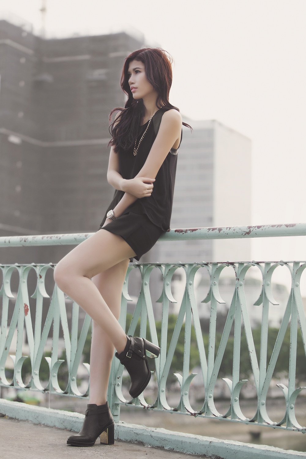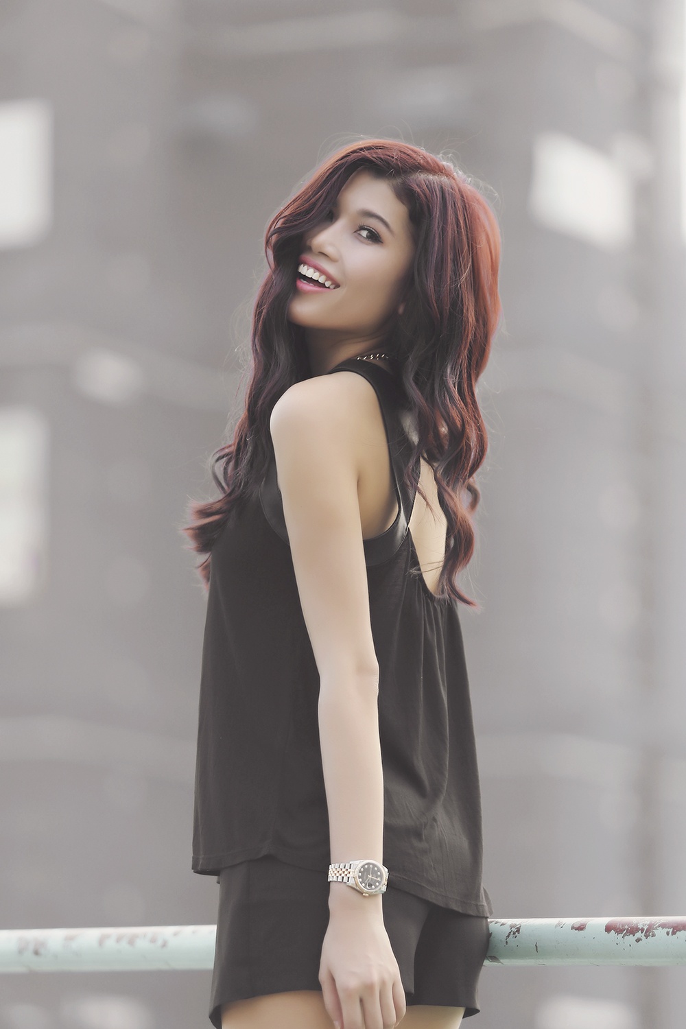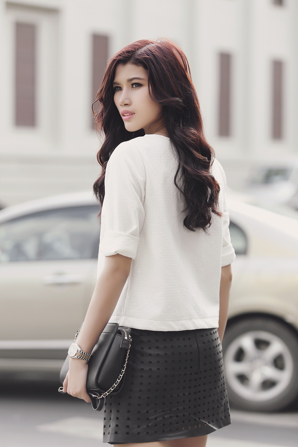 Hình ảnh năng động, hiện đại của chân dài thêm phần cuốn hút nhờ phong thái tươi tắn, trẻ trung. Bộ ảnh được hỗ trợ bởi stylist: Tân Đà Lạt, trang điểm: Phúc Nghĩa, làm tóc: Nam JC.