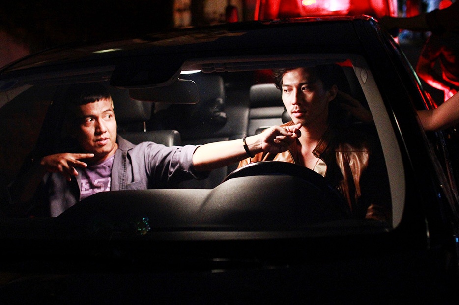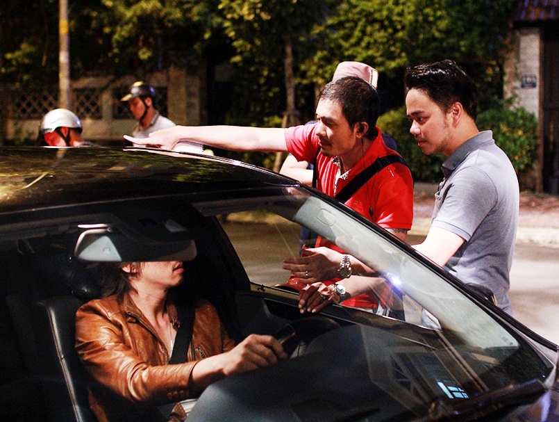 | Nguyễn Hoàng Duy chỉ đạo diễn xuất trong cảnh đập vỡ kính xe. |