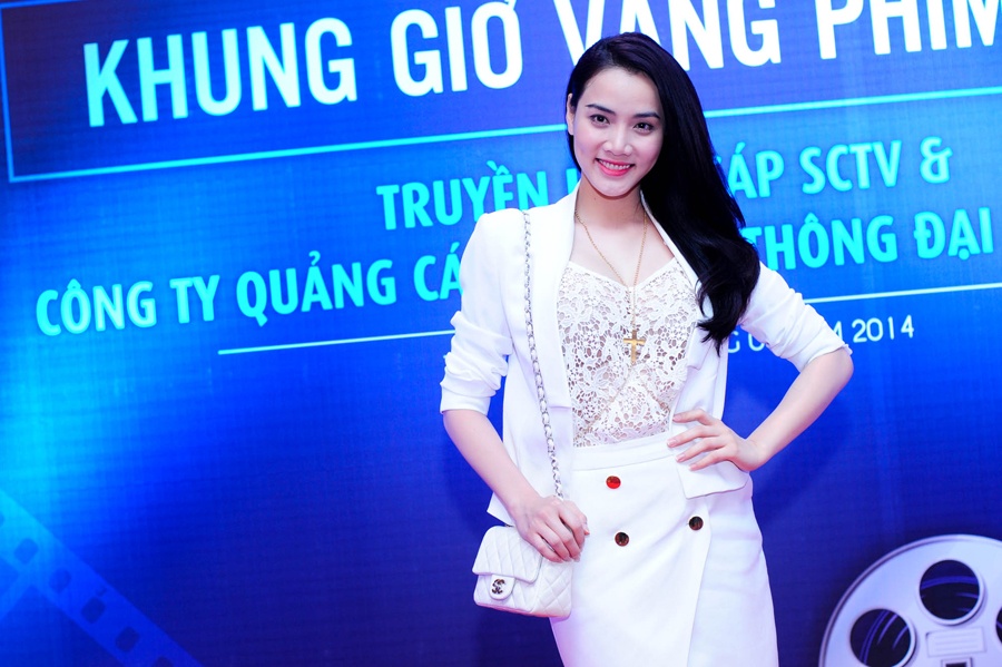 | Hôm 23/4, Trang Nhung đã có mặt trong buổi lễ ra mắt khung giờ vàng phim Việt trên kênh truyền hình cáp SCTV14 tại TP.HCM. |
