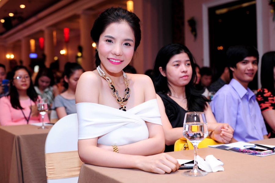 Người đẹp thu hút mọi ánh nhìn khi xuất hiện trong buổi họp báo ngày 23/4.