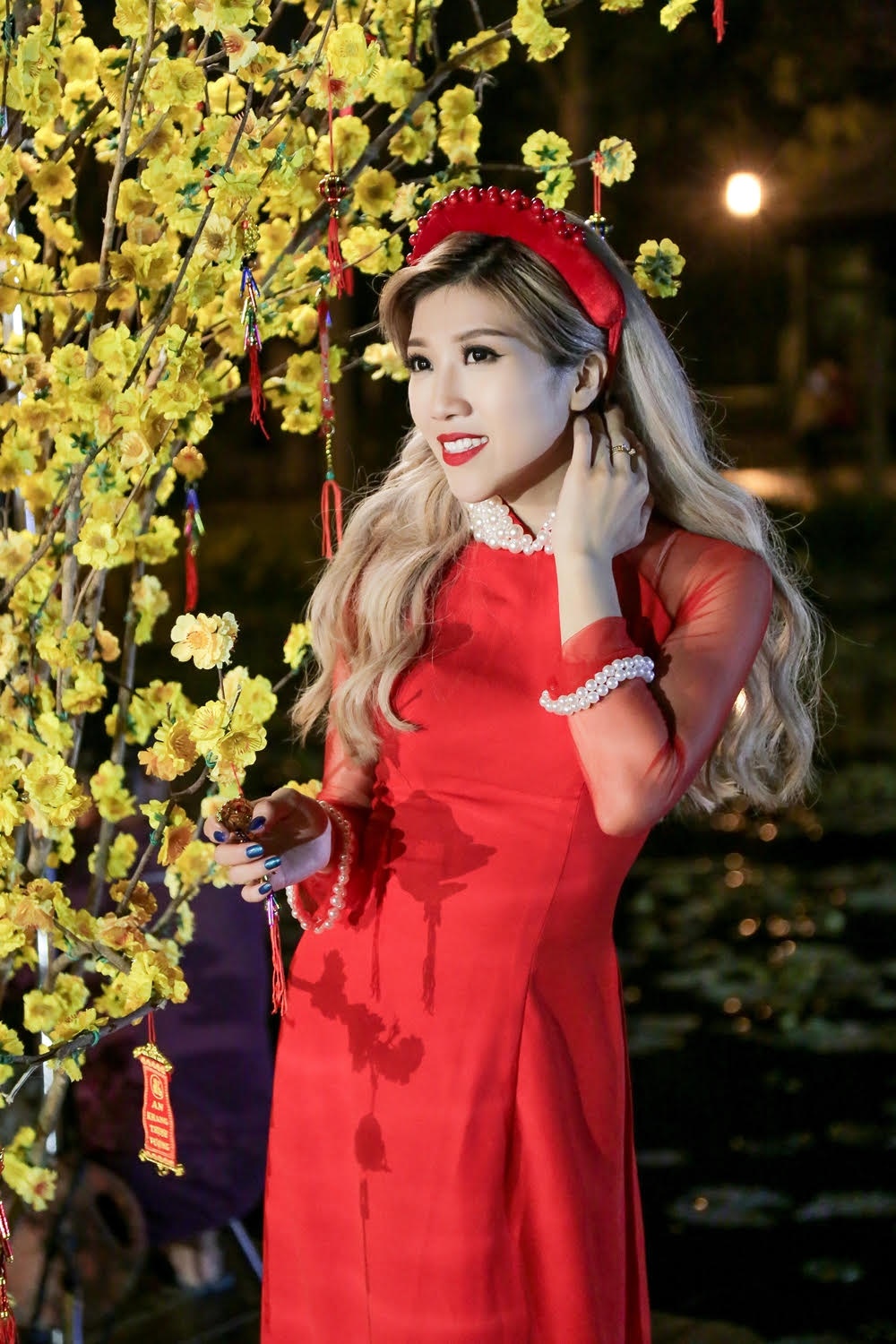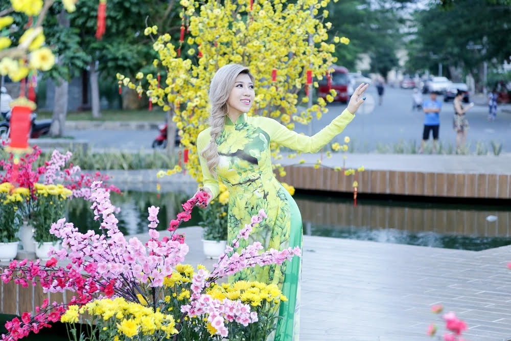 | Hòa trong không khí mùa xuân, Trang Pháp chọn những bộ áo dài rực rỡ, sắc màu để quay MV. Cô cho biết, Tết chưa đến nhưng trong lòng thấy xốn xang vô cùng. |