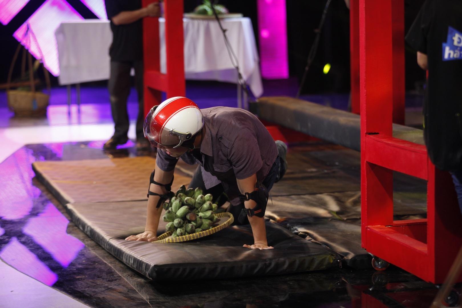| Trong khi MC Phạm Anh Khoa đang vô cùng hào hứng cản đường, Trương Thế Vinh đã chứng minh bản lĩnh và sức mạnh của mình khi khéo léo chuyển hàng đến tận nơi. |