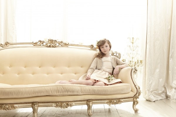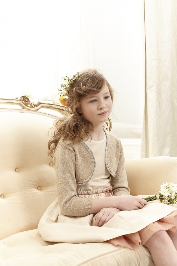 | Chiếc áo len ngắn được cắt may tinh tế là phụ kiện hoàn hảo cho bộ váy màu nude tuyệt đẹp dành cho các bé gái. |