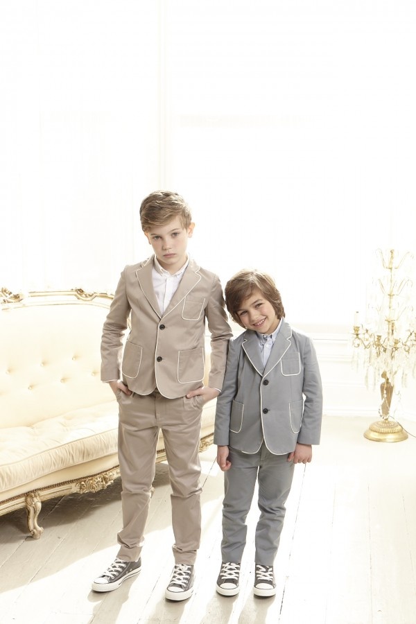 | Các cậu bé đáng yêu trong những bộ vest với gam màu trung tính. |