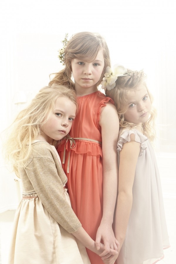 | Những gam màu như nude, cam nhẹ nhàng là tông màu nổi bật trong các trang phục dành cho bé gái. Ngoài ra chất liệu lụa mềm mại cùng những đường xếp mềm mại cũng là điểm nhấn chính của bộ sưu tập, giúp các bé trở nên vô cùng dễ thương. |
