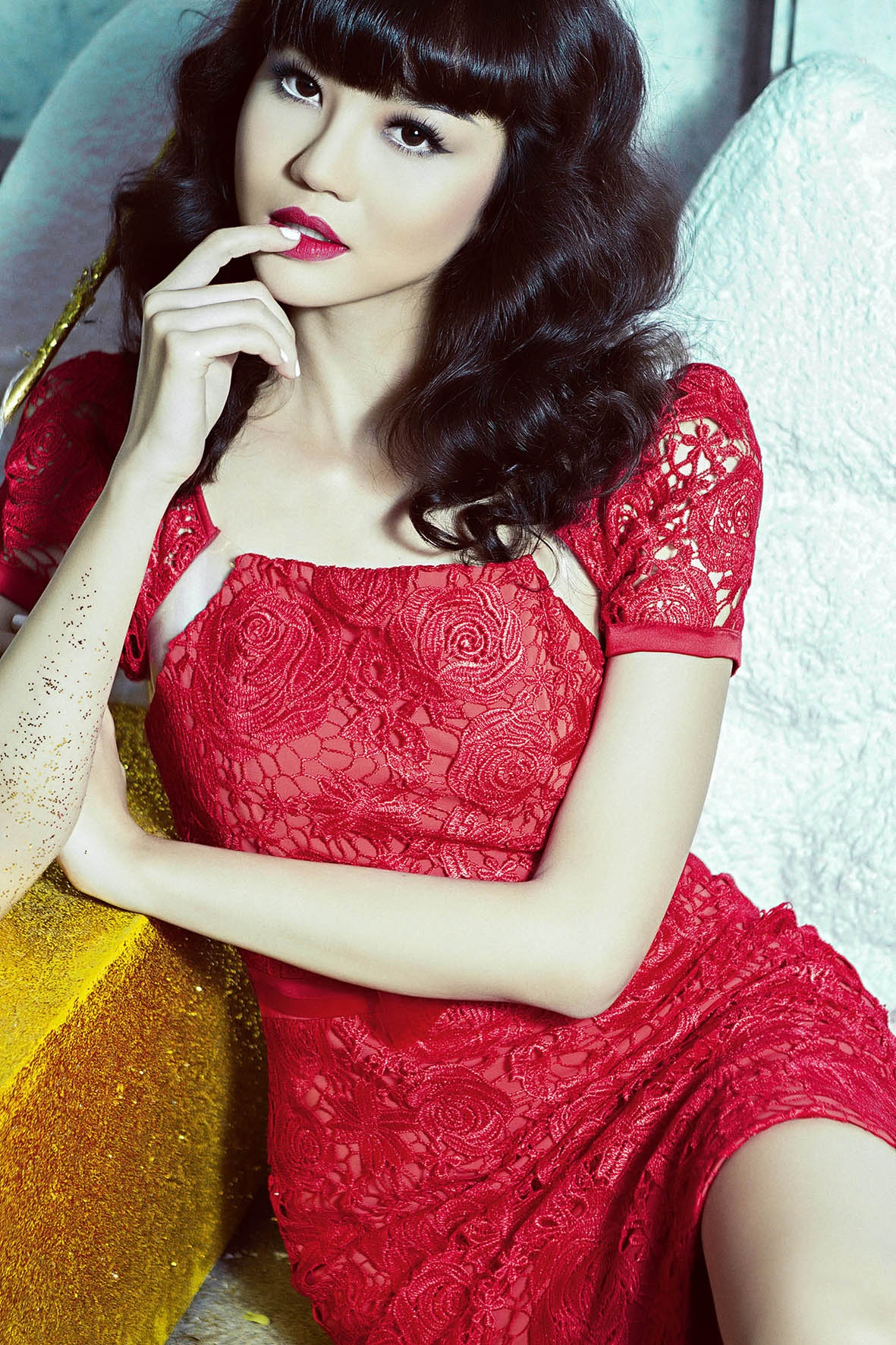 Bên cạnh đó, BST còn giới thiệu những gam màu đỏ nổi bật, chất liệu ren làm chủ đạo, pha trộn cùng chất liệu nhựa mềm tạo vẻ đẹp hiện đại. Cách phối hợp vừa cổ điển vừa hiện đại tạo nên hình ảnh nổi bật và tinh tế cho người mặc.