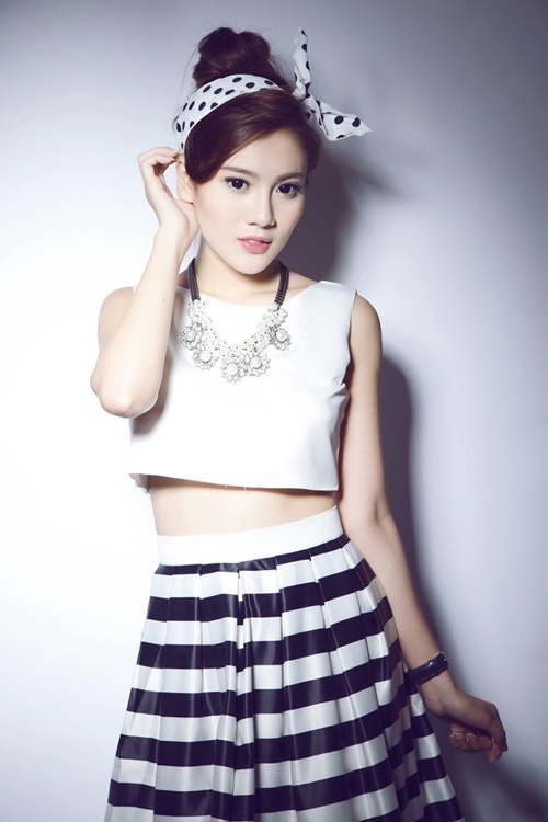 Hoặc kết hợp áo crop top cùng chân váy xòe kẻ sọc. |