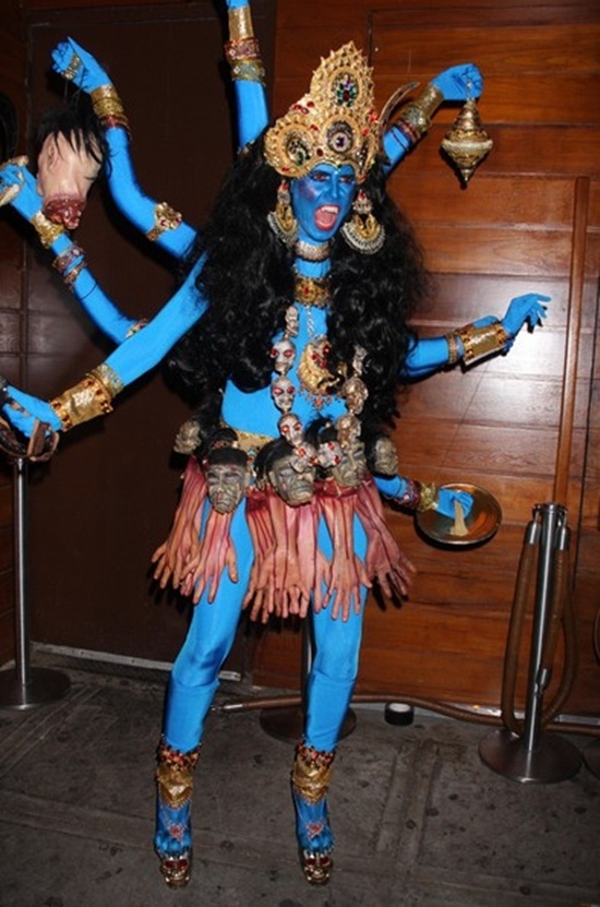 | Năm 2008, siêu mẫu Heidi Klum đã hóa thân thành nữ thần Kali của đạo Hindu. Việc này đã vấp phải những phản đối gay gắt của cộng đồng người Hindu khi họ cho rằng nữ thần linh thiêng của mình đã bị bôi nhọ khi xuất hiện trong một hộp đêm với đám đông ồn ào xung quanh. |