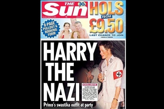 | Năm 2005, Hoàng gia Anh đã bị một phen lao đao khi những hình ảnh Hoàng tử Harry trong trang phục của một lính Đức quốc xã xuất hiện trên nhiều tờ báo. Sau đó, anh đã phải lên tiếng xin lỗi vì sự lựa chọn sai lầm này. |