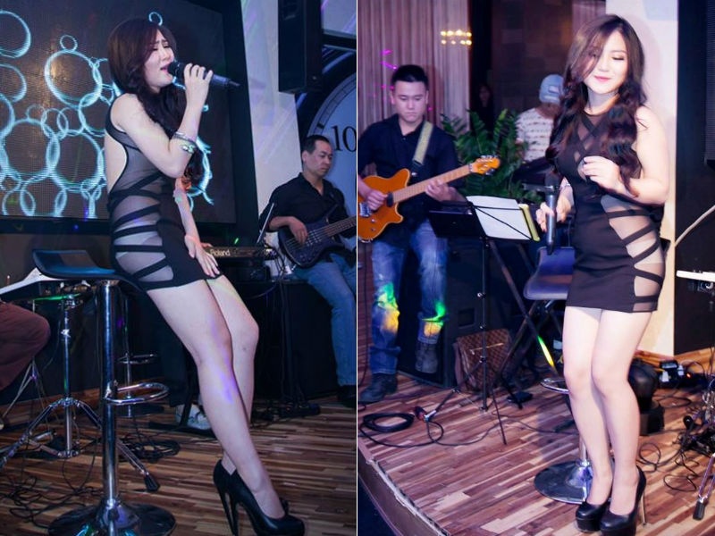 Giọng ca Hà thành là một trong những ca sĩ rất đắt show hát bar, đồng thời là người đẹp sở hữu nhiều bộ trang phục xuyên thấu, ngắn nhất khi trình diễn tại chốn "ăn chơi" này.