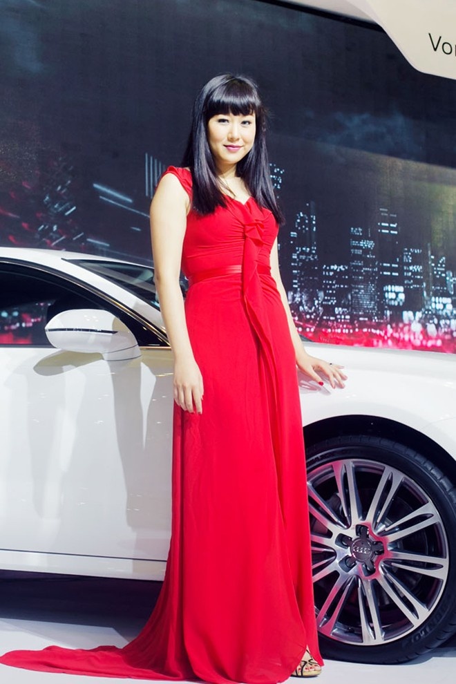 | Bộ cánh hoa hậu Phương Lan diện khi tham dự sự kiện triển lãm ô tô cũng không mấy phù hợp với xu thế đương đại. Thiết kế voan có điểm nhấn phổ biến ở những năm trước khiến người mặc trông quê mùa và không mấy nổi bật. |
