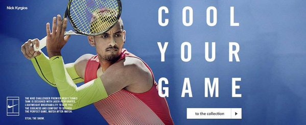 Gạt đi chiếc áo phông truyền thống, Kyrgios quyết định phá cách bằng chiếc áo sát nách màu đỏ. Điểm nhấn khẳng định sự chơi trội của Kyrgios là phần ống tay màu xanh nõn chuối sặc sỡ giống màu của quả bóng tennis.