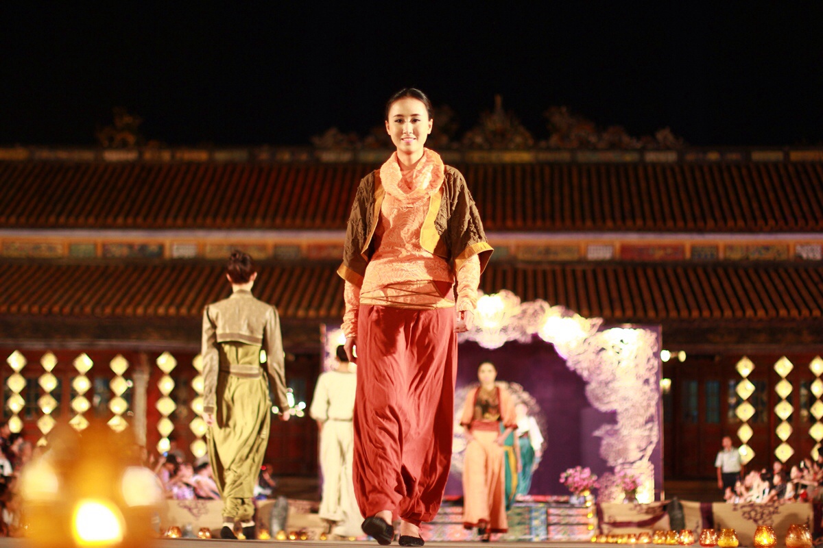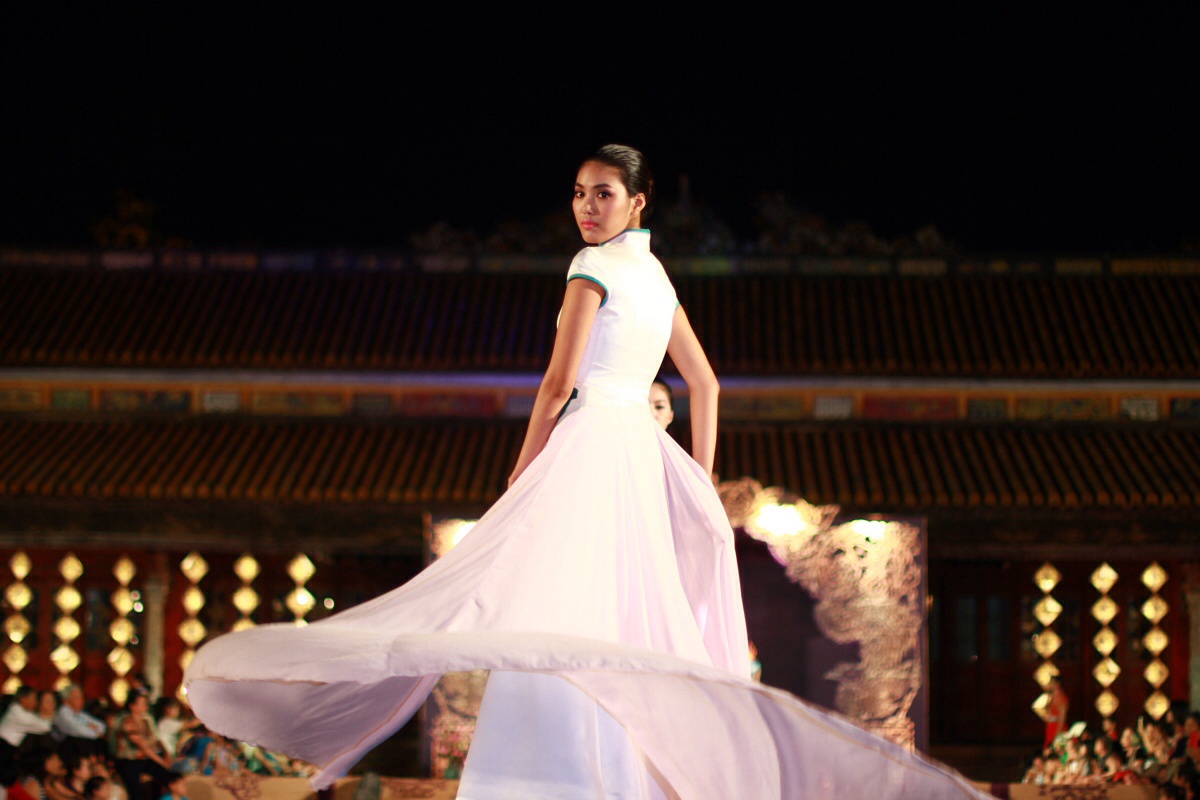 Trong chương trình Đêm Phương Đông tại Festival Huế, các nhà thiết kế Hải Long, Thế Huy, Công Khanh, Minh Hạnh (đại diện đoàn Việt Nam) giới thiệu đến công chúng những sáng tạo mới nhất. Trong nền nhạc hào hùng của sân khấu điện Thái Hòa, những chiếc áo dài Việt thướt tha nay đẹp và lộng lẫy hơn với những phá cách bất tận phối hợp cùng nón lá, các phụ kiện mang vẻ đẹp sang trọng và quý phái của một hoàng cung xưa.