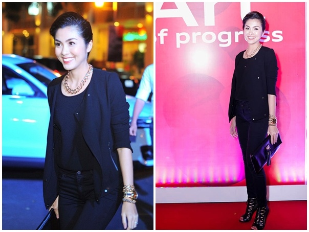 Bộ cánh tông đen do chính ‘’ngọc nữ’’ điện ảnh Việt tự tay thiết kế không nhận được đánh giá cao.