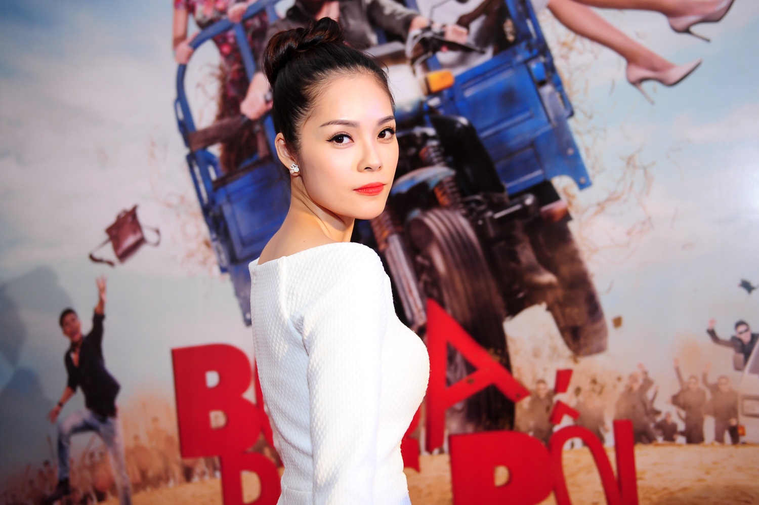 Người đẹp Trương Nhi gây chú ý khi diện chân váy xẻ cao cùng bratop đến xem phim. Nữ diễn viên Nhà có 5 nàng tiên luôn trung thành với phong cách sexy, hở bạo mỗi khi xuất hiện. Cô là gương mặt quen thuộc với khán giả truyền hình qua các phim Tam nam bất phú, Lối sống sai lầm, Vòng xoáy bạc...