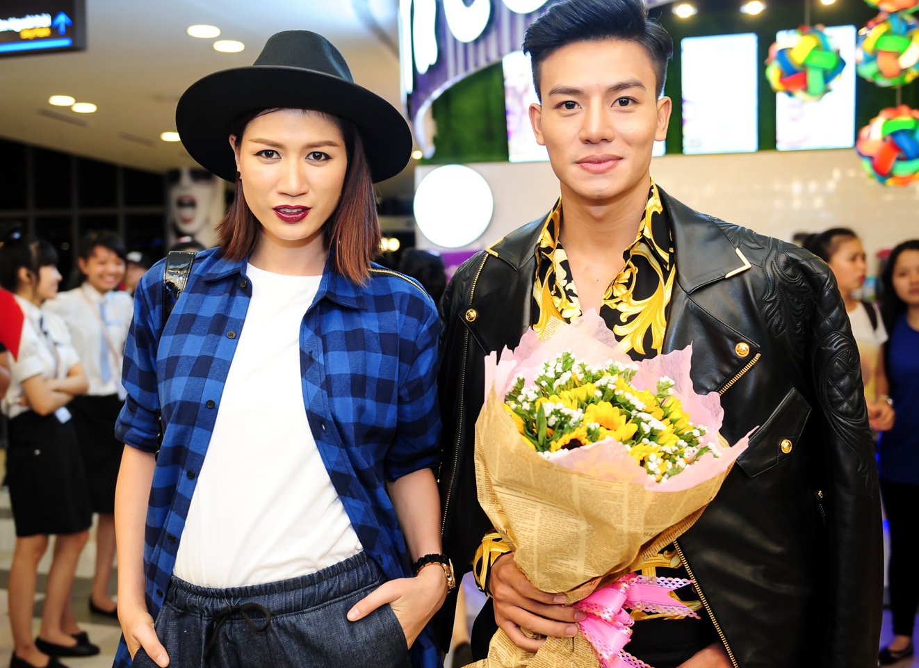 | Trang Trần chụp ảnh cùng Hiếu Nguyễn. Họ từng đồng hành trong Cuộc đua kỳ thú, đóng chung phim Hương Ga nên rất thân thiết ngoài đời. |