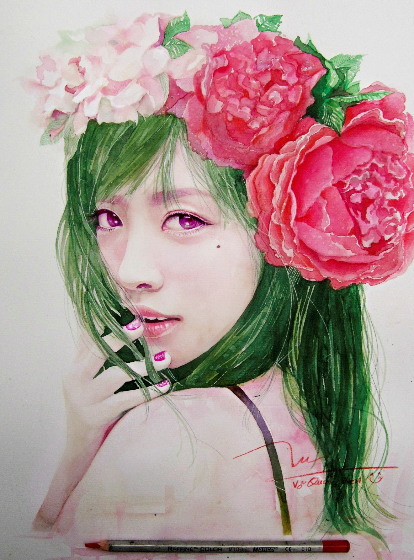 Bức tranh của Quốc Vẹn được thực hiện chủ yếu bằng chất liệu màu nước và kết hợp chì màu ở phần vòng hoa trên tóc. Theo đánh giá của cộng đồng mạng, tác phẩm có sự sáng tạo, màu sắc sống động và diễn tả được phần hồn của nhân vật.