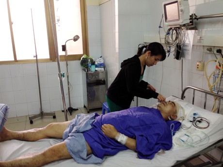 | Nạn nhân Chung điều trị tại bệnh viện (Ảnh: Báo Quảng Ninh). |