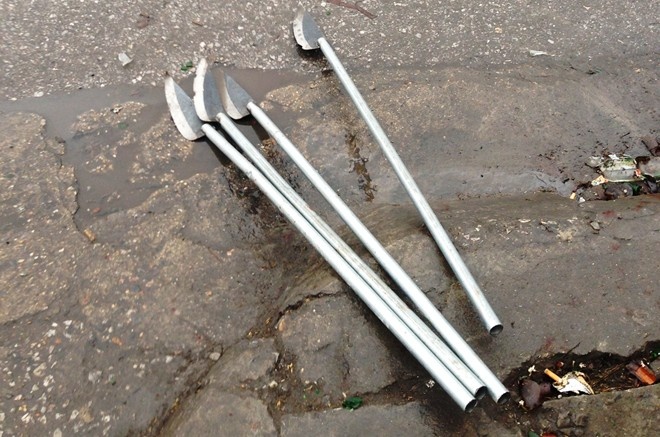 | Hung khí của 2 nhóm người đánh nhau được cơ quan điều tra thu giữ. |