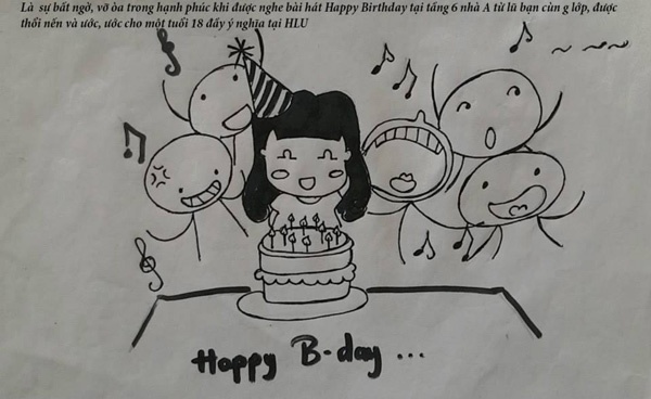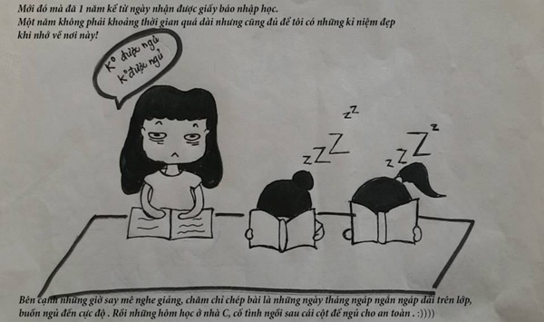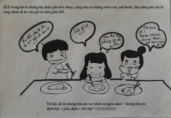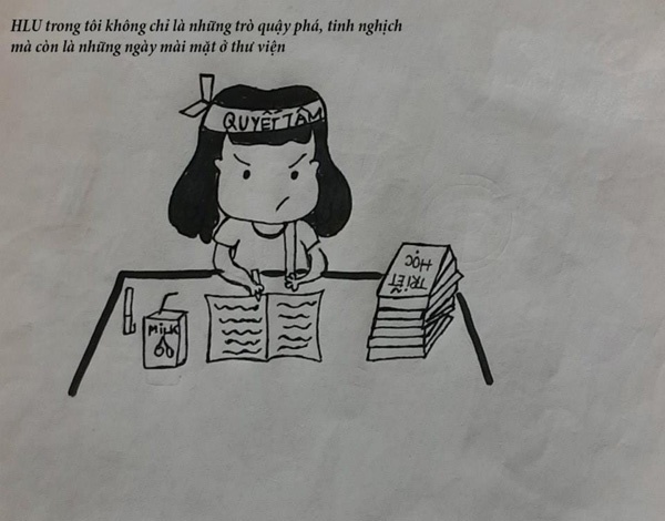 Hưởng ứng cuộc thi "HLU in my heart", Nguyễn Hải Anh đã gửi tới cuộc thi một bộ tranh kể về năm thứ nhất đại học dưới mái trường này.