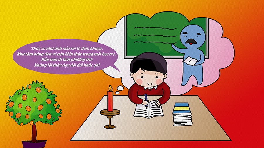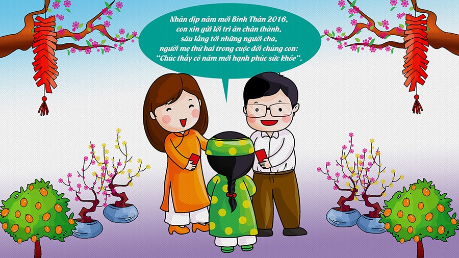 Những câu chúc hay và ý nghĩa được sưu tầm, thể hiện dưới dạng tranh vẽ đầy màu sắc ngày xuân, là món quà tặng người thầy trong ngày mùng 3 Tết. |