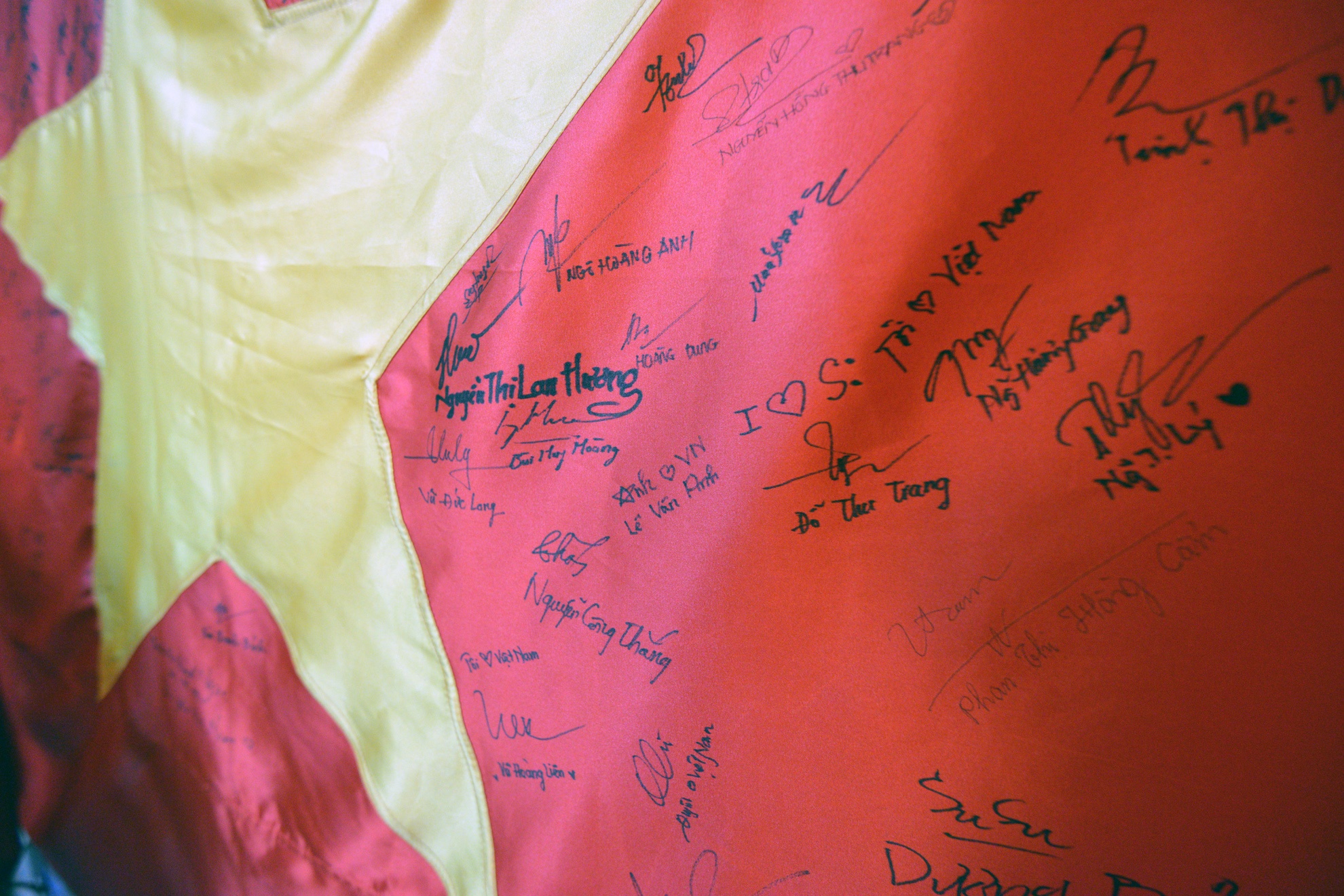 | Tại đây còn có một lá cờ cỡ lớn để lưu chữ ký cùng những dòng cảm xúc chia sẻ về dự án. |