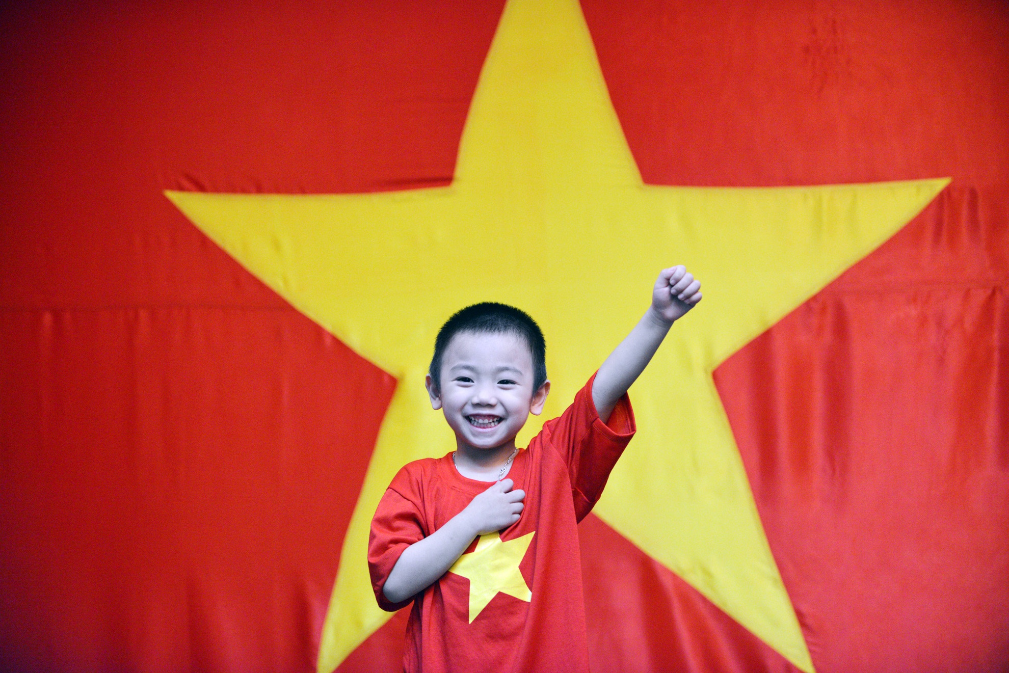 Nhiều em nhỏ mới 4, 5 tuổi tỏ ra rất rạng ngời bên lá cờ Việt Nam.